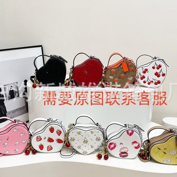 2025 New Urban Simple Style Women's Heart-Shaped Mobile Phone Bag Versatile One-Shoulder Diagonal Trendy Bag