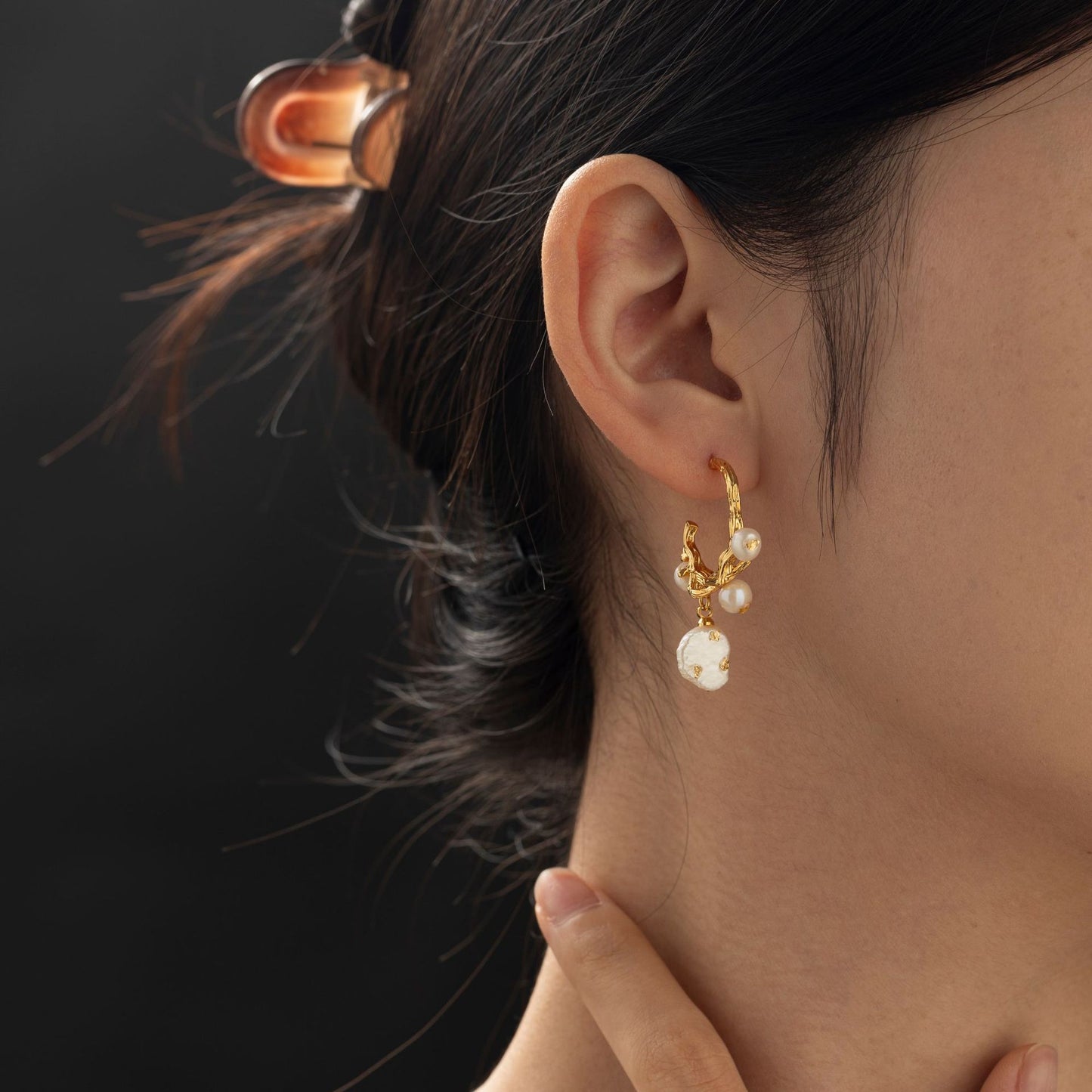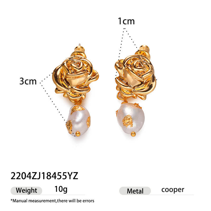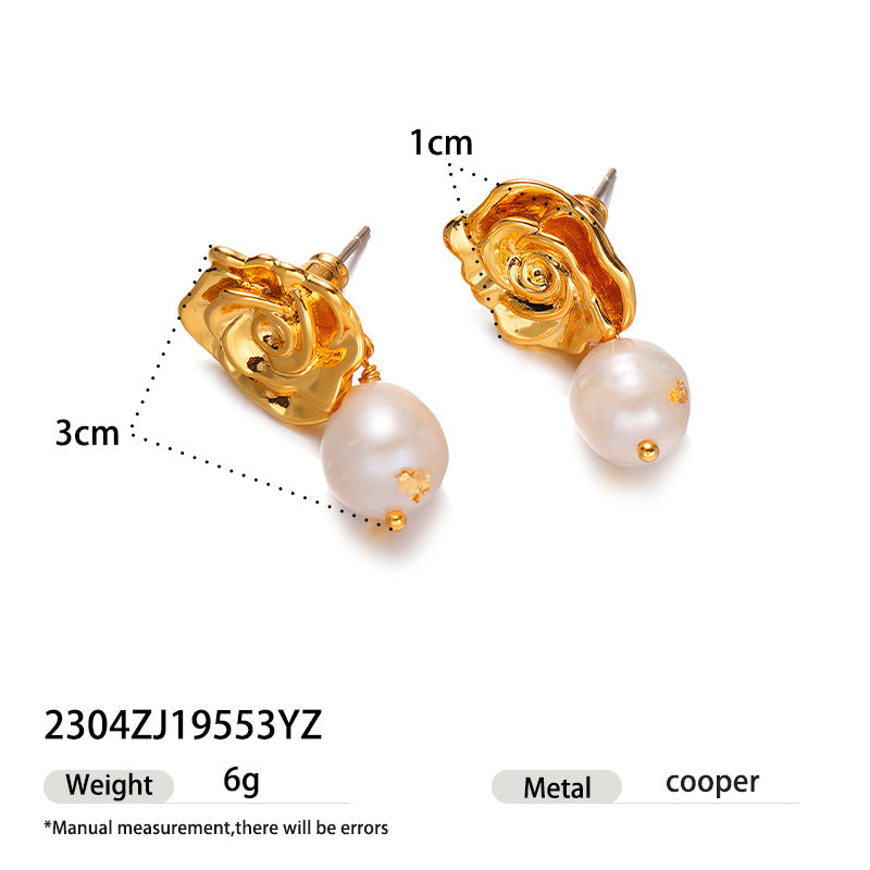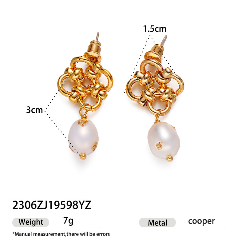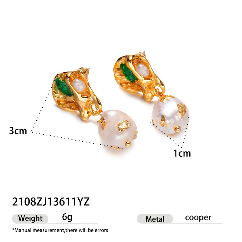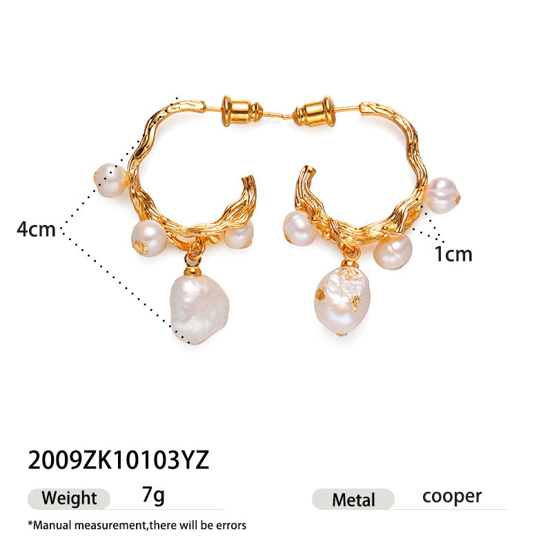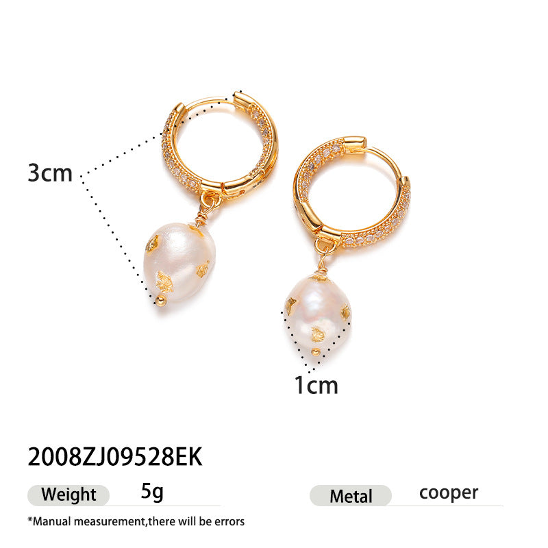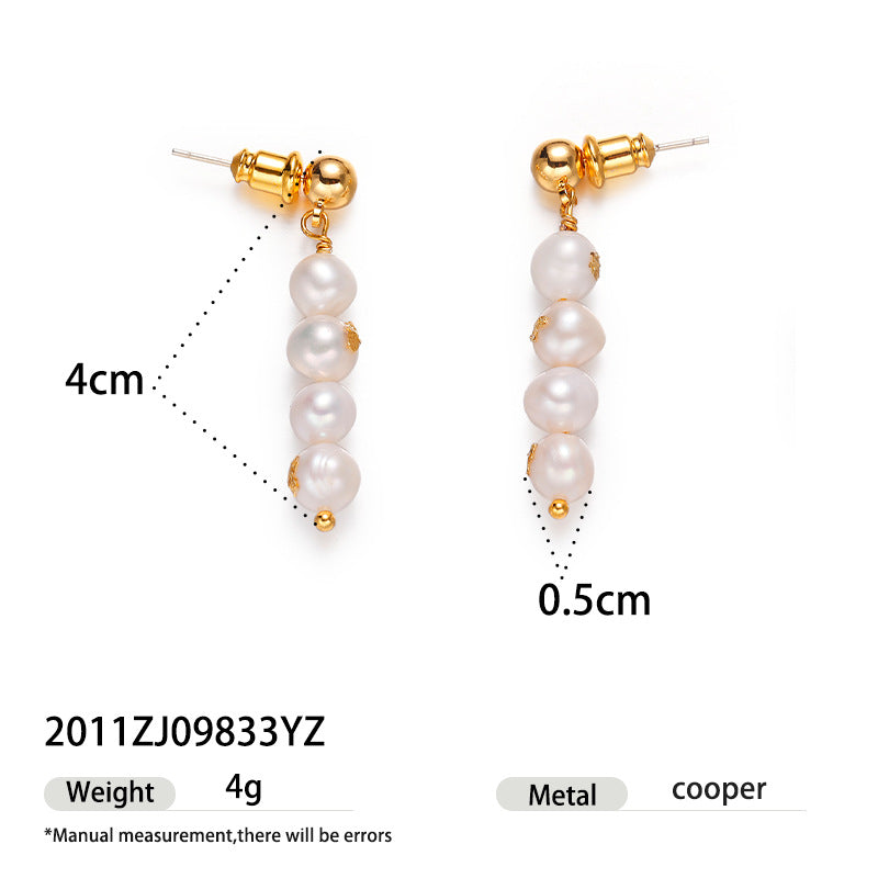 Brass Gold-plated Real Pearl Earrings