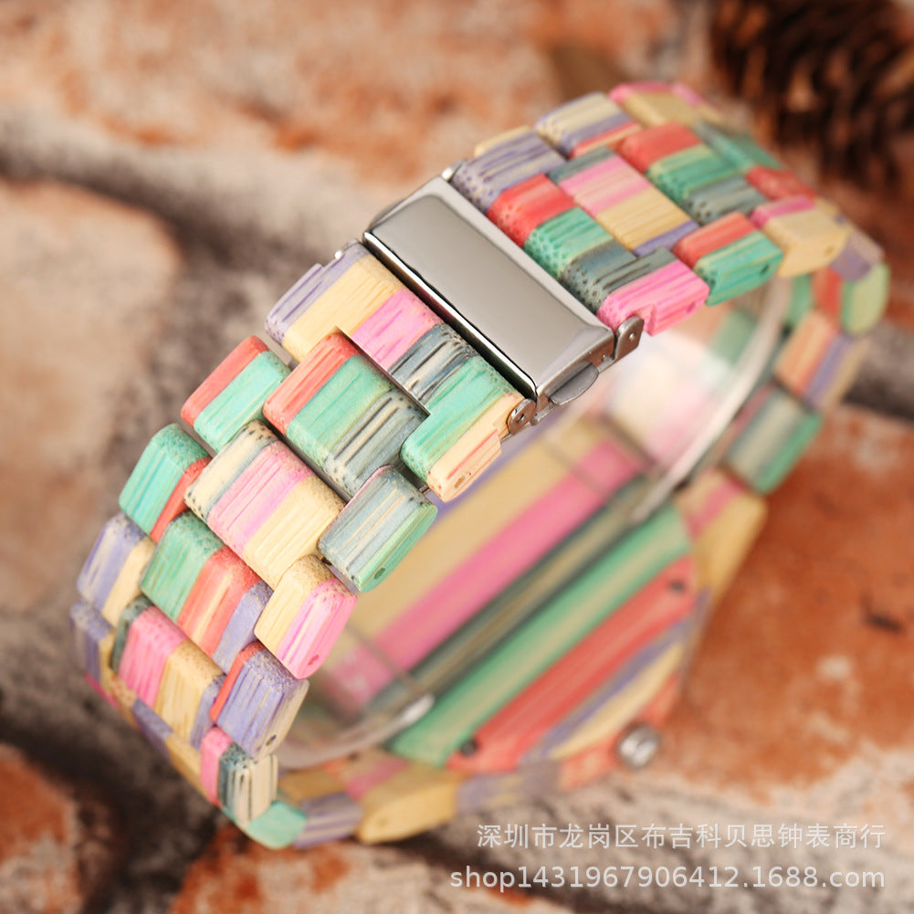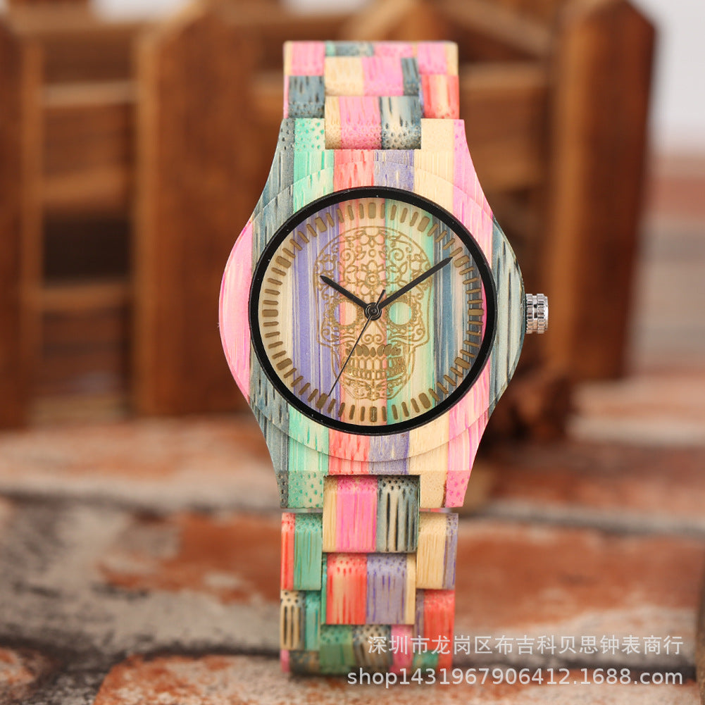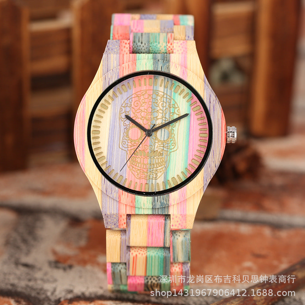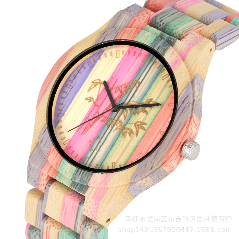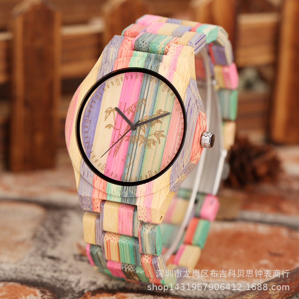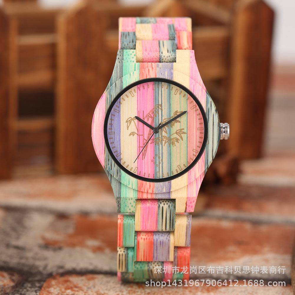 Couple Watch Creative Fashion Colorful Bamboo Wood Carving Surface Male And Female Couple Quartz Wooden Watch
