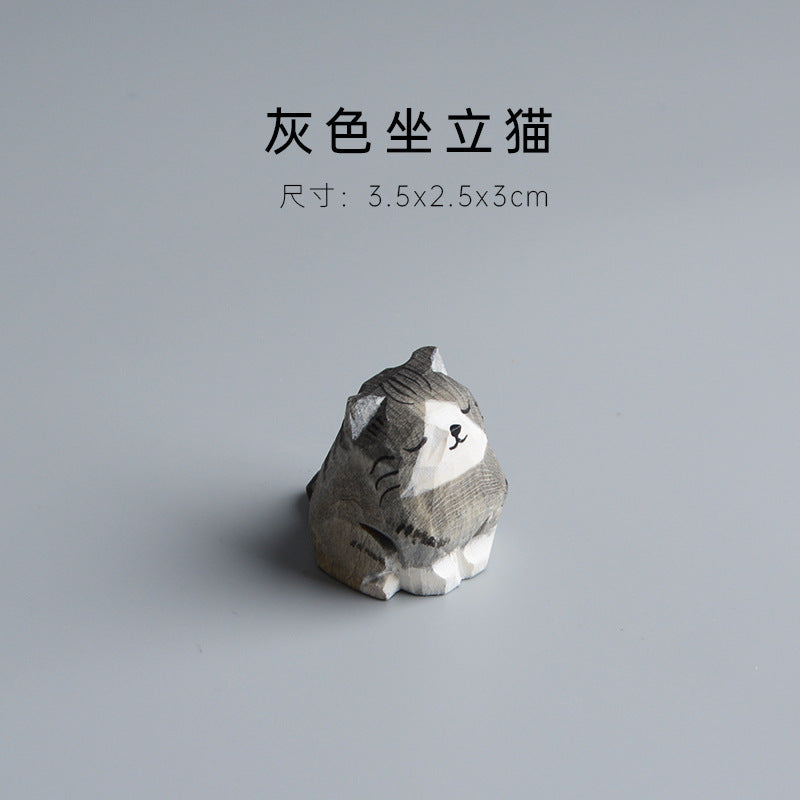 Creative Wooden Cat Trinkets Crafts Handmade Wood Carving