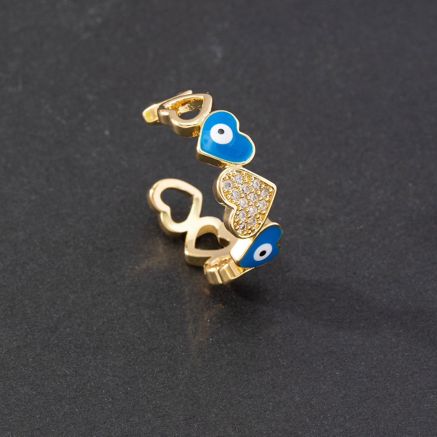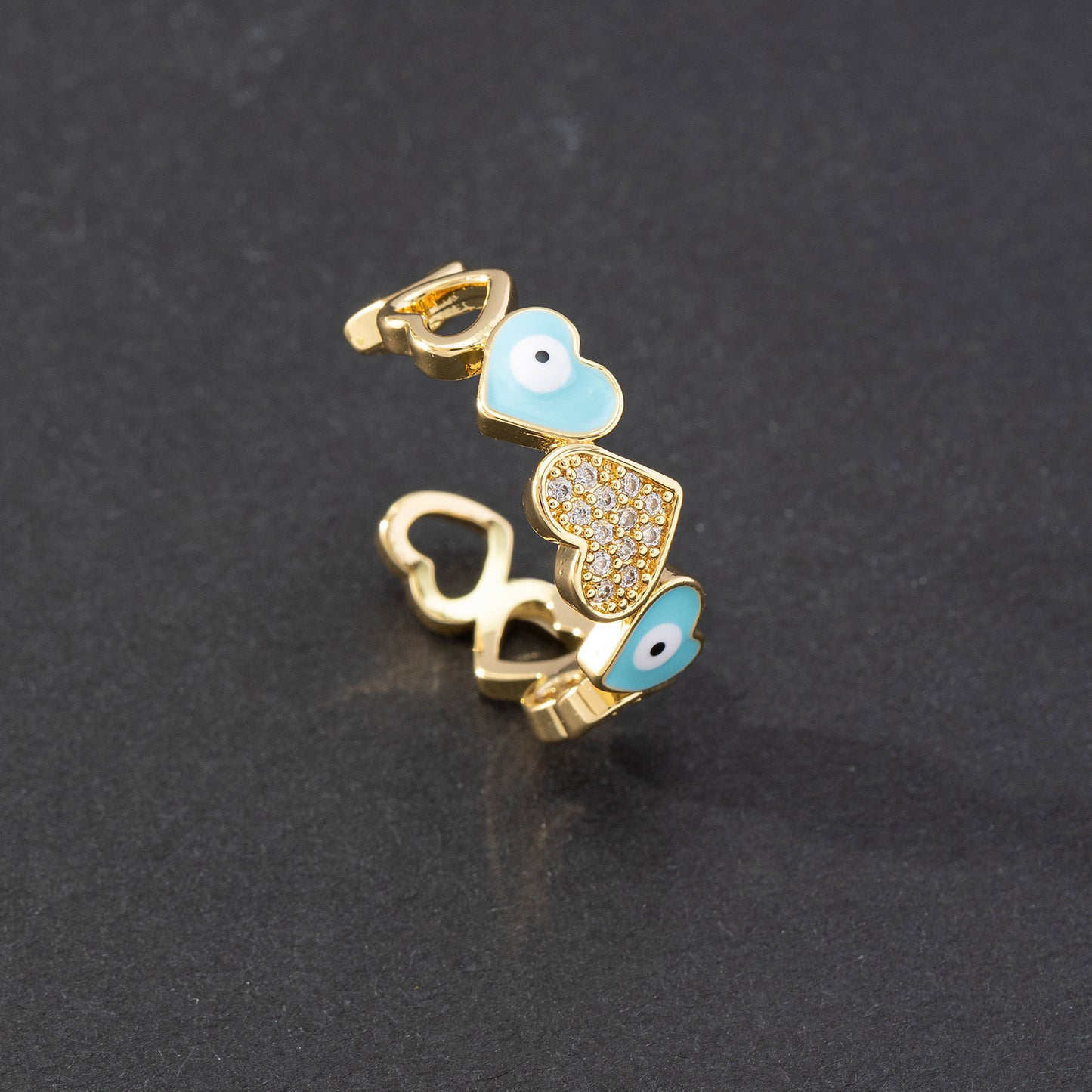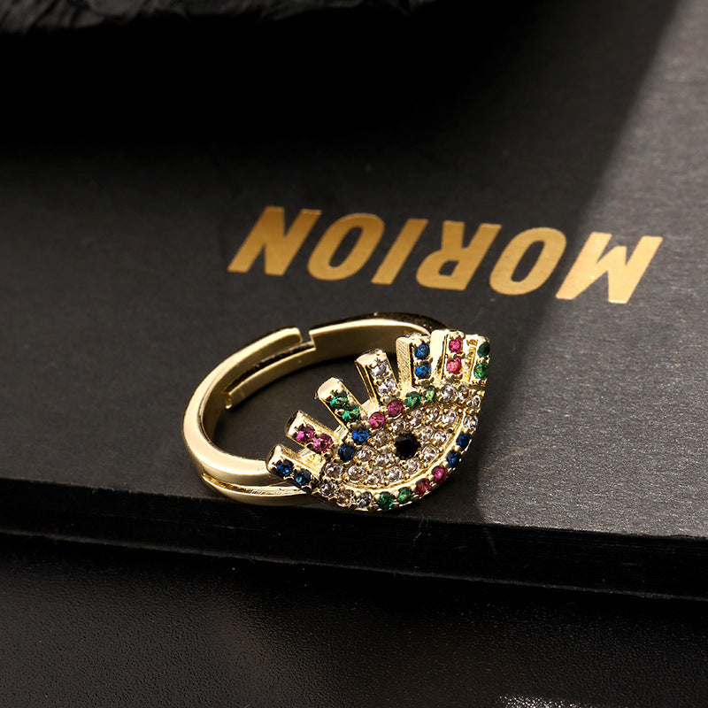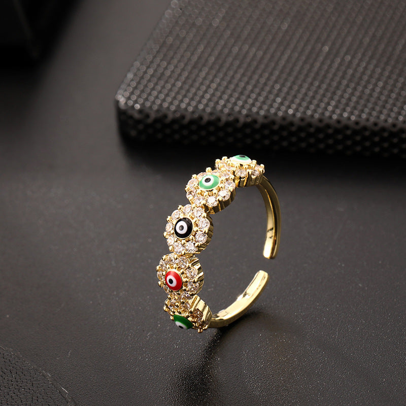 European And American Cross-border Jewelry Supply Copper Zircon Enamel Drop Oil Ring Female Evil Eye Retro Tail Ring Open Ring