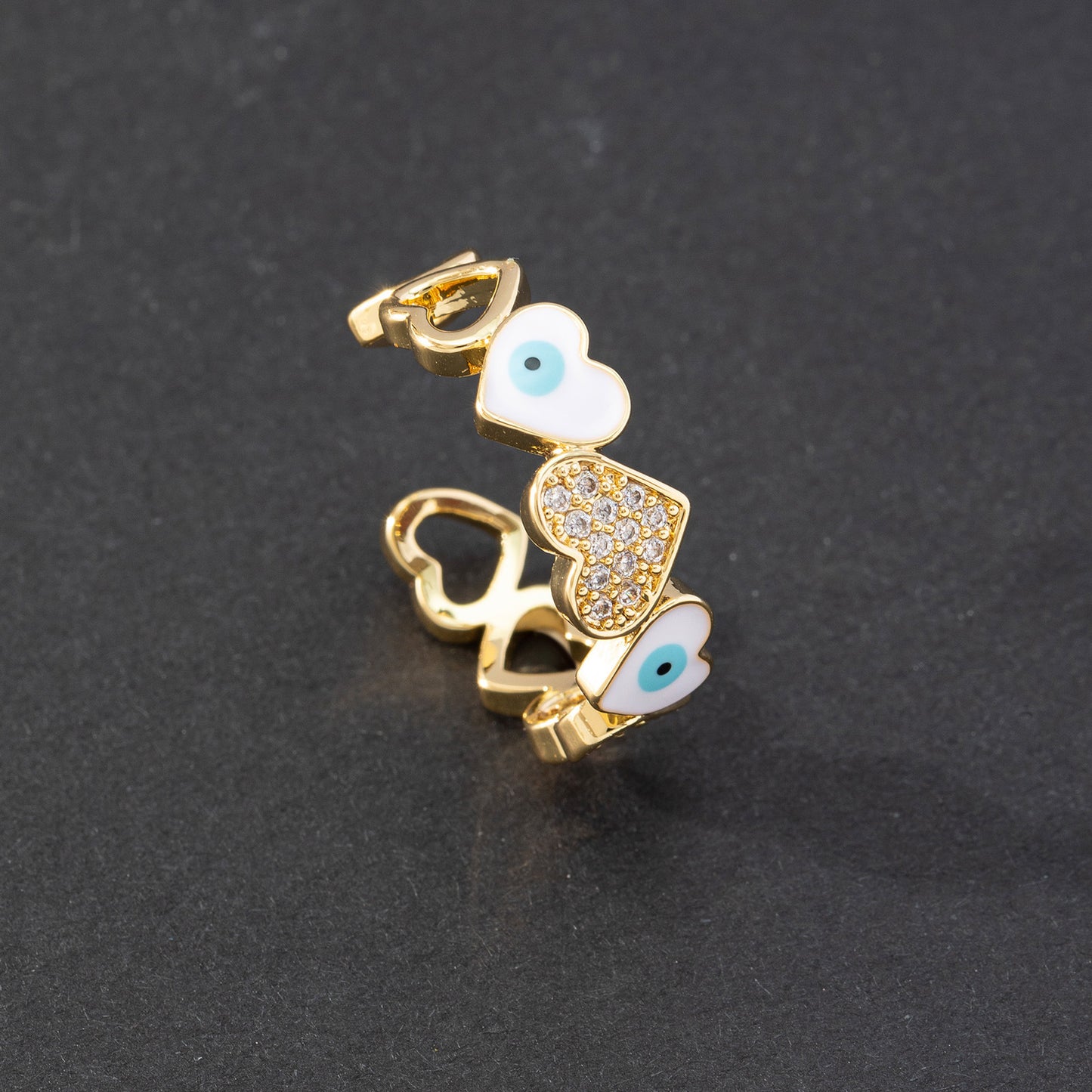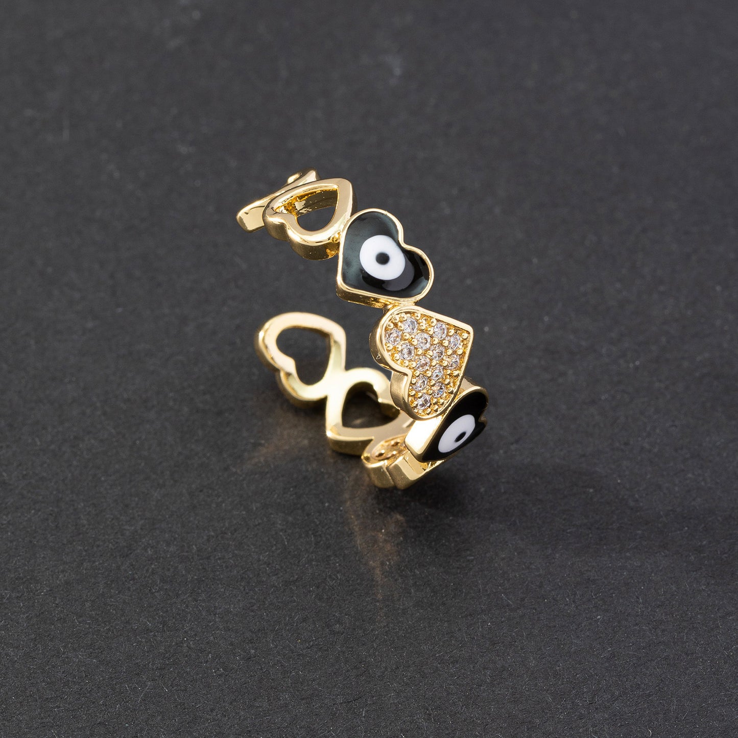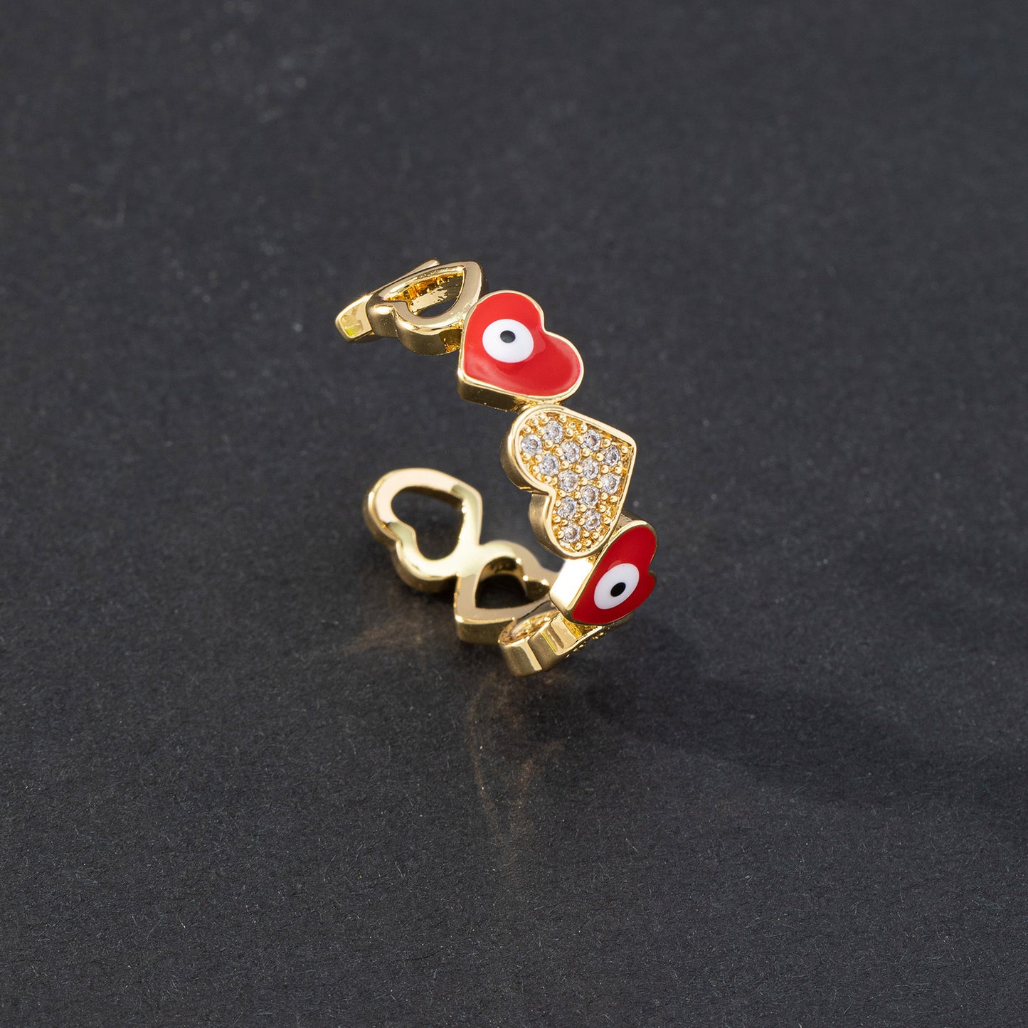 European And American Cross-border Jewelry Supply Copper Zircon Enamel Drop Oil Ring Female Evil Eye Retro Tail Ring Open Ring
