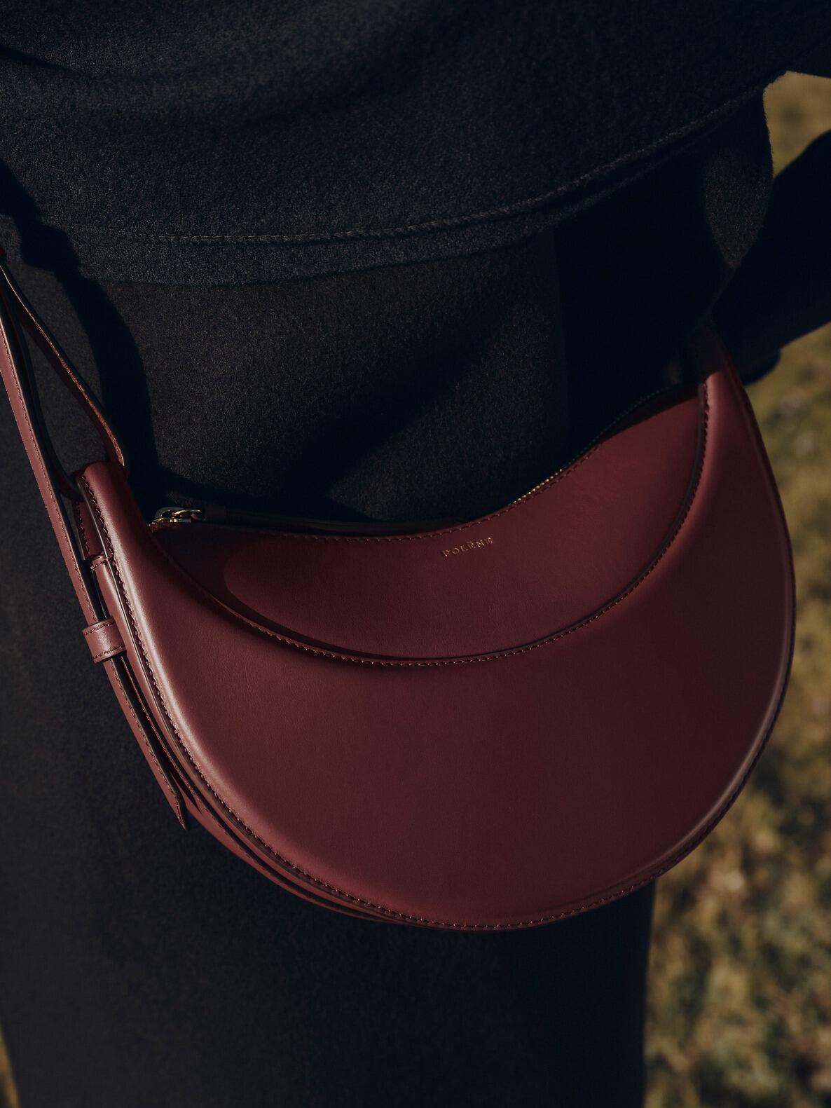 French Counter POLENE Real Cowhide Crescent Bag Shoulder Crossbody Saddle Bag Commuter Small Size Underarm Women's Bag