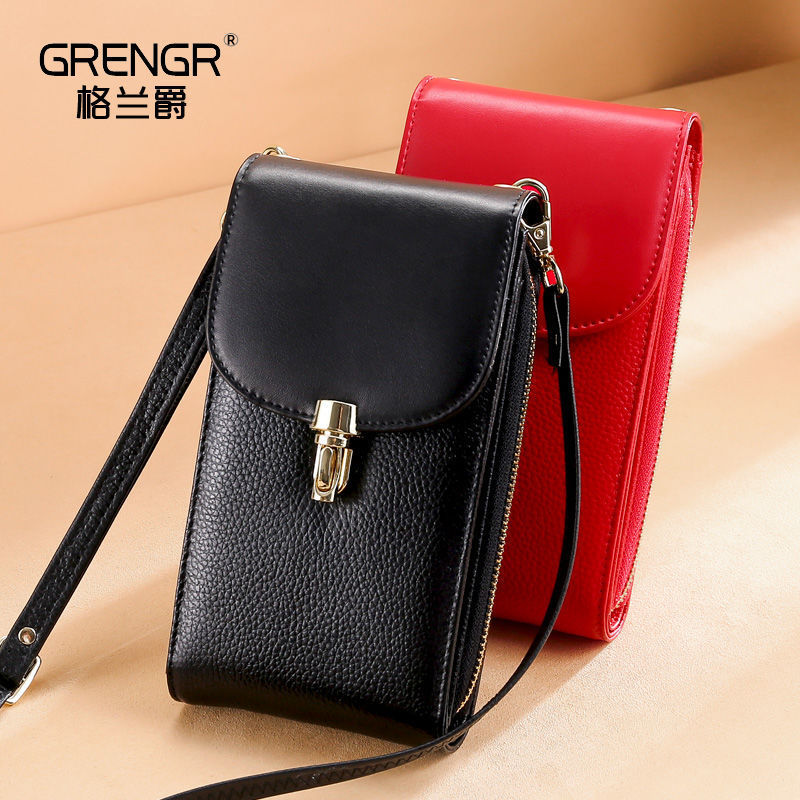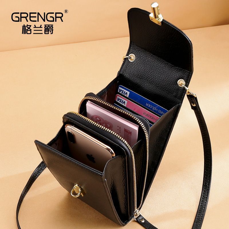 Genuine Leather Mobile Phone Bag Women's Crossbody Small Bag Trendy Vertical Versatile Mobile Phone Bag New Mini Small Bag
