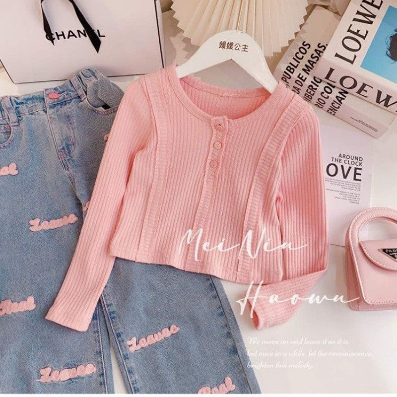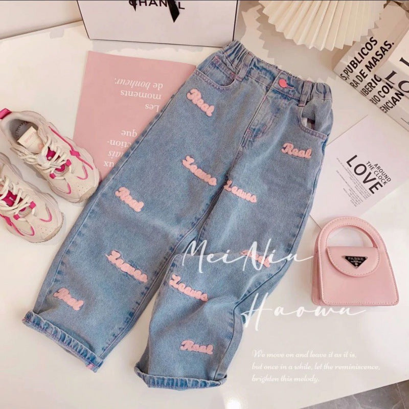 Girls Suit Baby New Korean Style Western Style Girl Long-Sleeved Top Two-Piece Set Kidsren's Autum Big Kidsren's Jeans