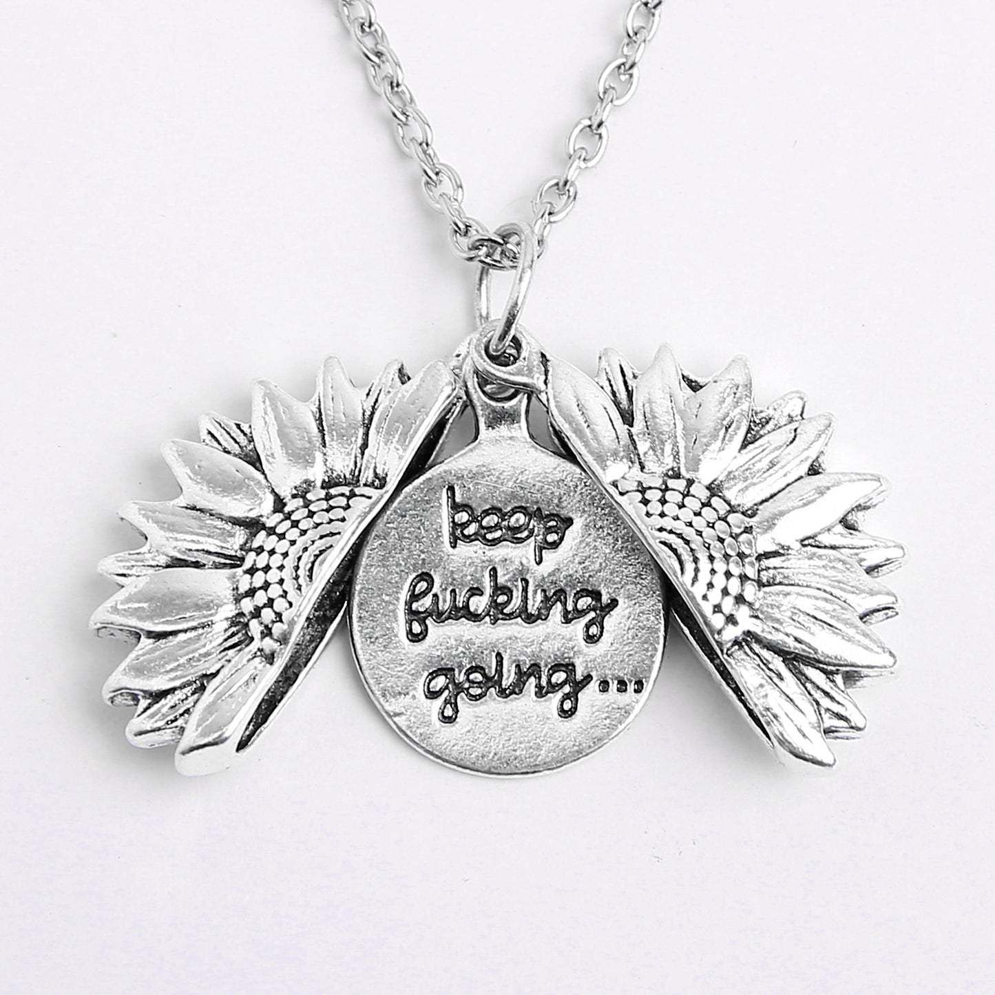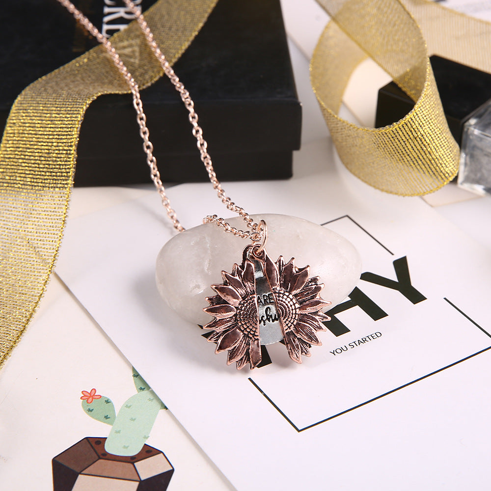 Jewelry Alloy Flowers Can Be Opened Sunflower Engraved Letters Smear Necklace