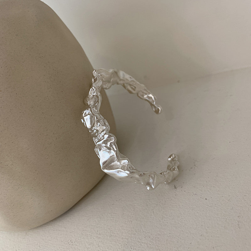 Korean Version Of Light Luxury Exaggerated Bracelet For Women Retro Fashion Heavy Industry Geometric Irregular Hip Hop Concave And Convex Tin Foil Bracelet Jewelry