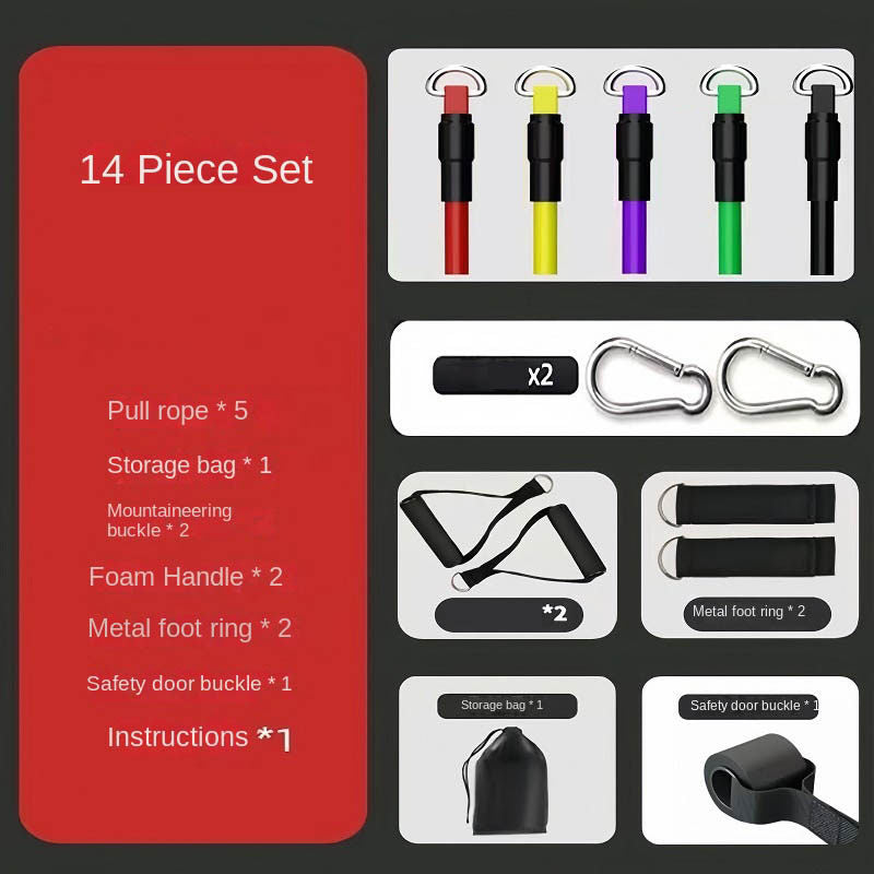 Multi-functional Tension Device Home Sports Fitness Equipment Tension Belt Chest Muscle Training Elastic Belt 11 Piece Tension Rope