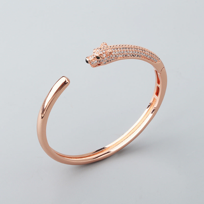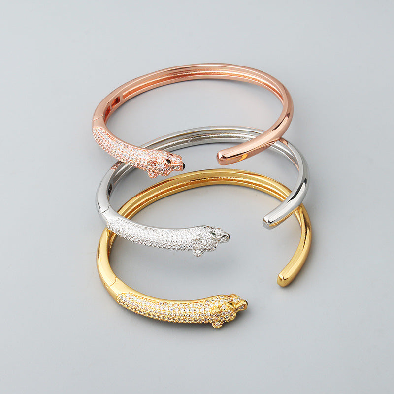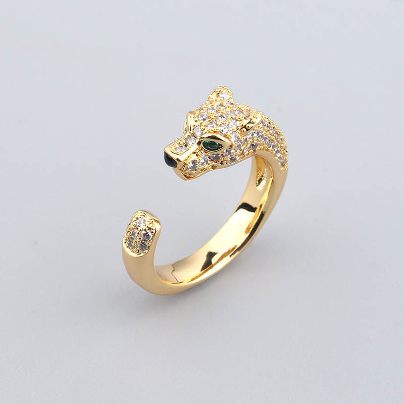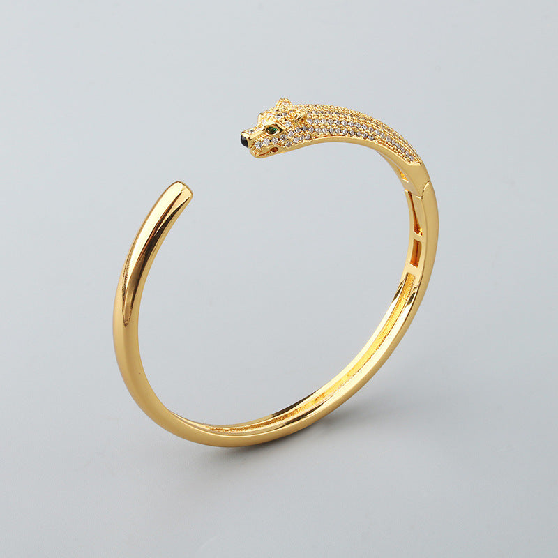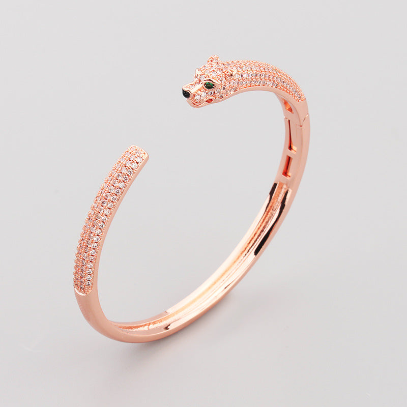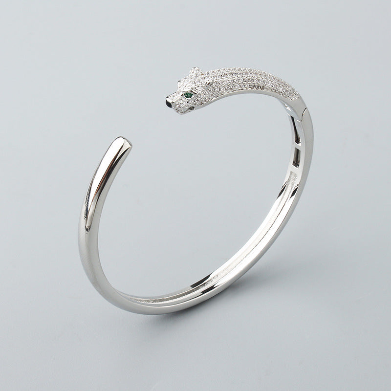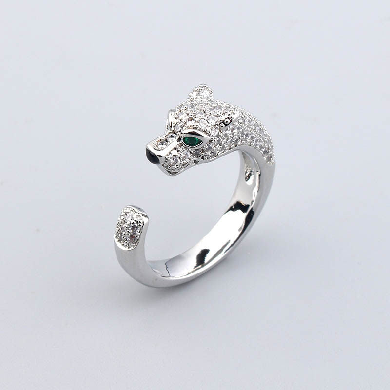 New Leopard Simple Micro-inlaid Zircon Green Eye Bracelet Ring Set Men's And Women's Casual Personality Jewelry