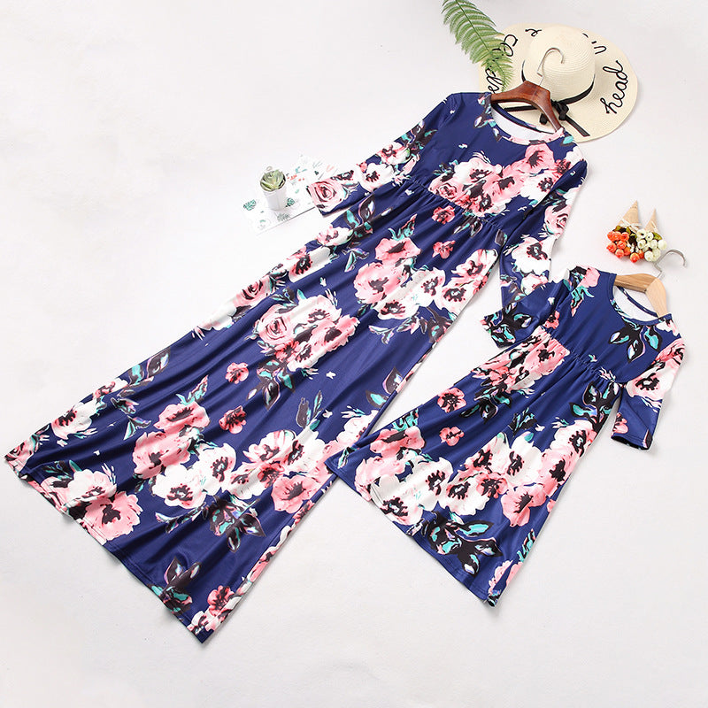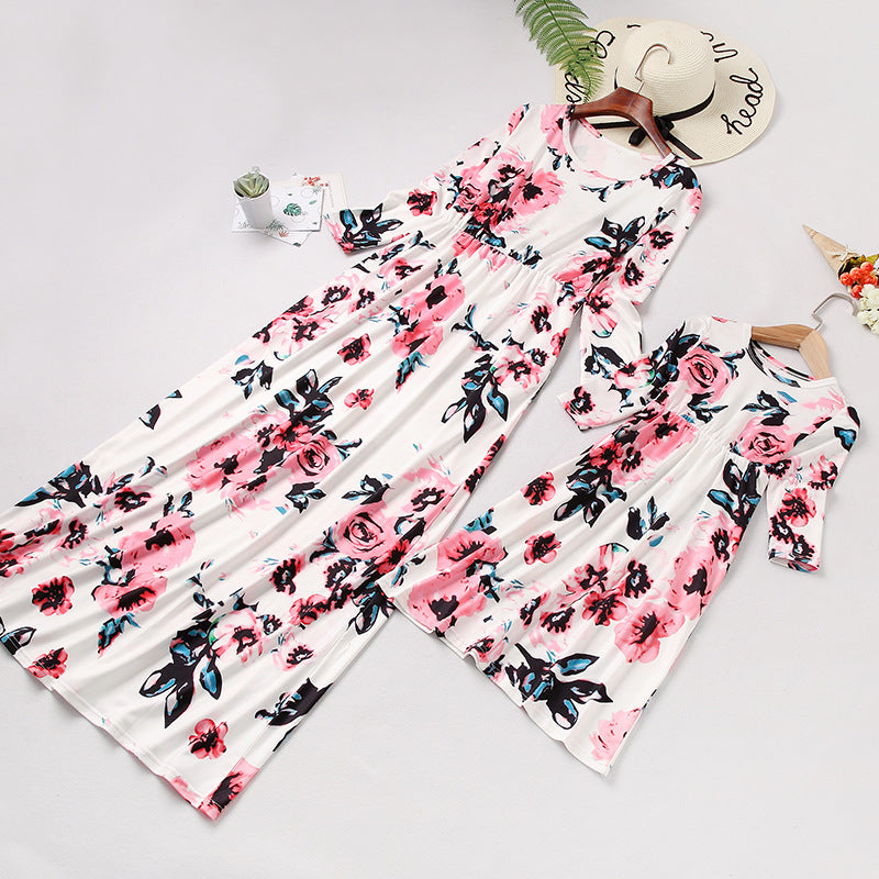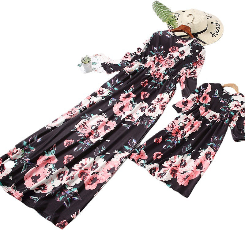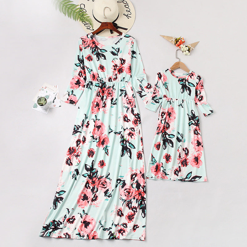 Parent-child Dress Ebay Printed Mother-daughter Dress Women's Nine-sleeve Long Dress