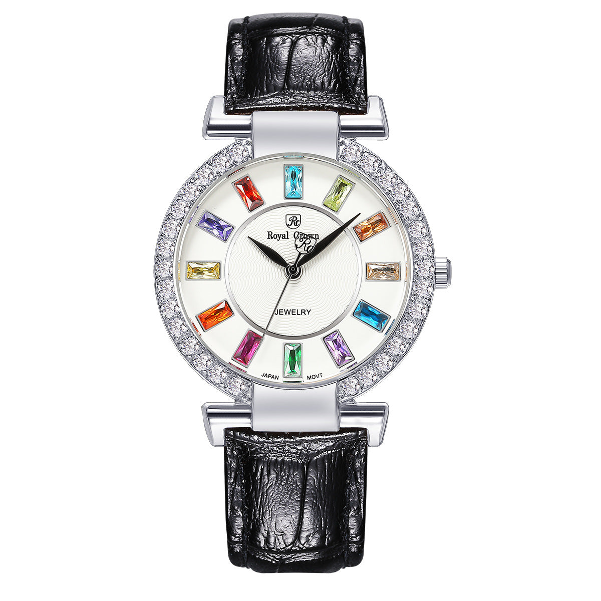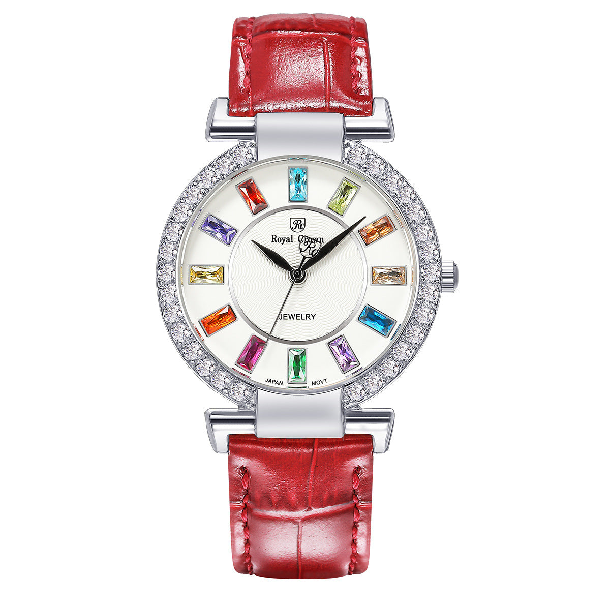 Royal Crown Royakron Watch Casual Belt Color Inlaid Zircon Fashion Women's Watch