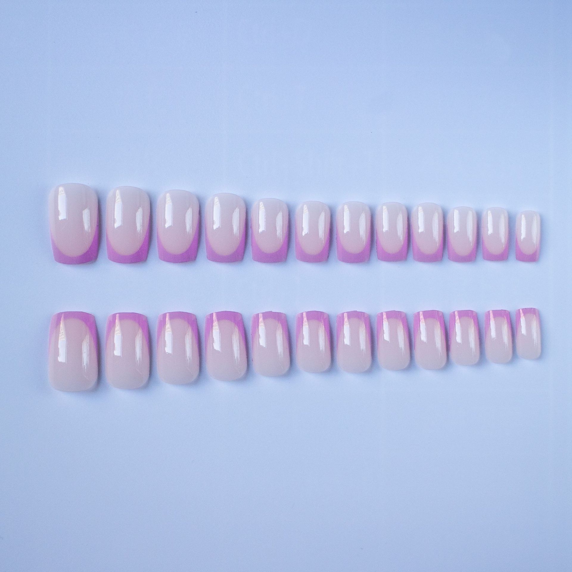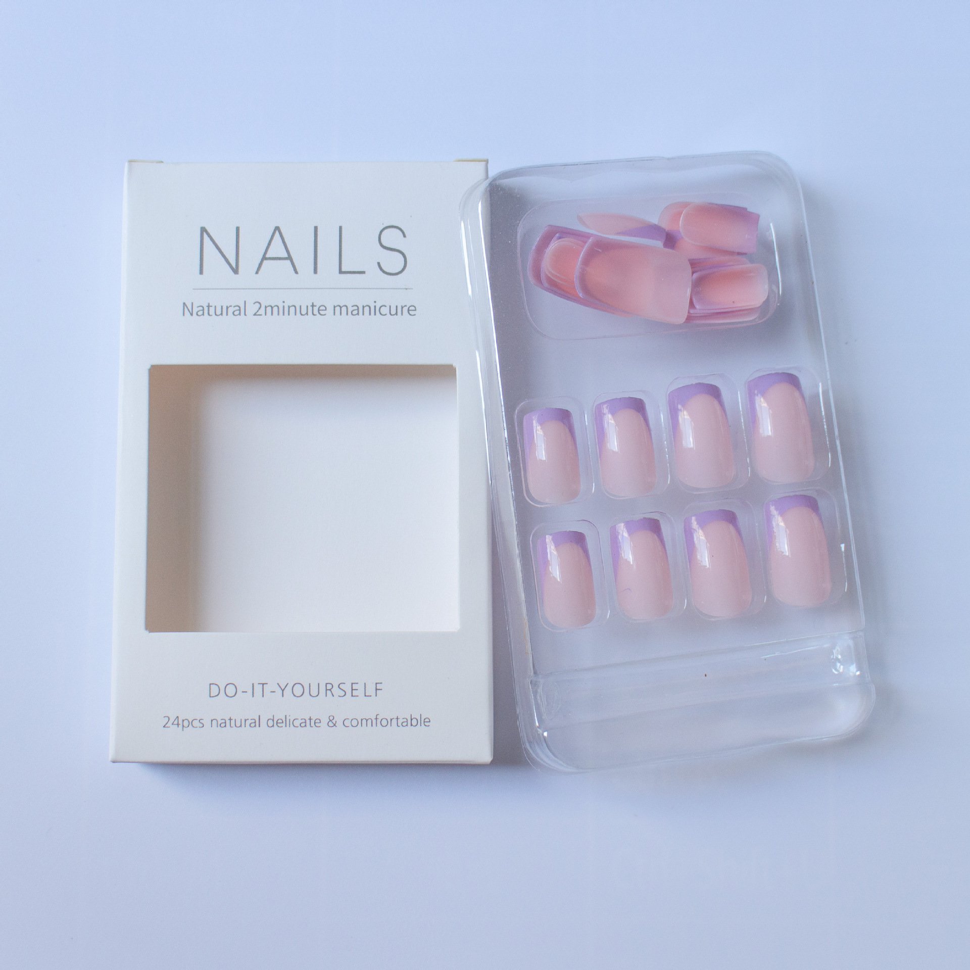 Wear Armour European And American Square Head Purple French Simple Nail Art 24 Removable Fake Nails