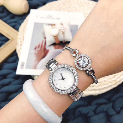Wechat Business New Fashion Bracelet Rhinestone Two-piece Jewelry Explosive Model Male And Female Student Watch Fashion Watch
